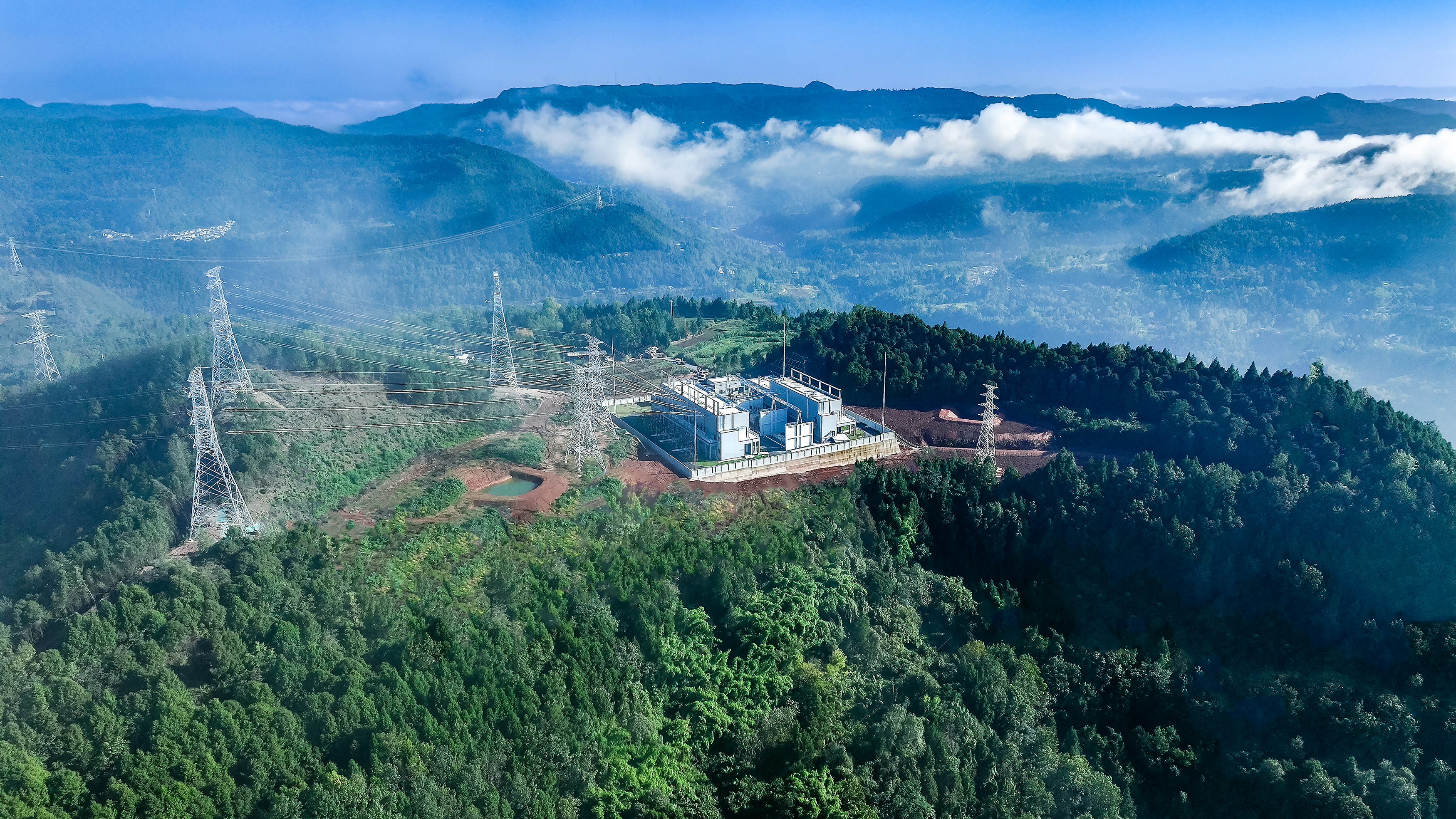 巴中曾口220千伏输变电工程鸟瞰。(王志刚 摄)